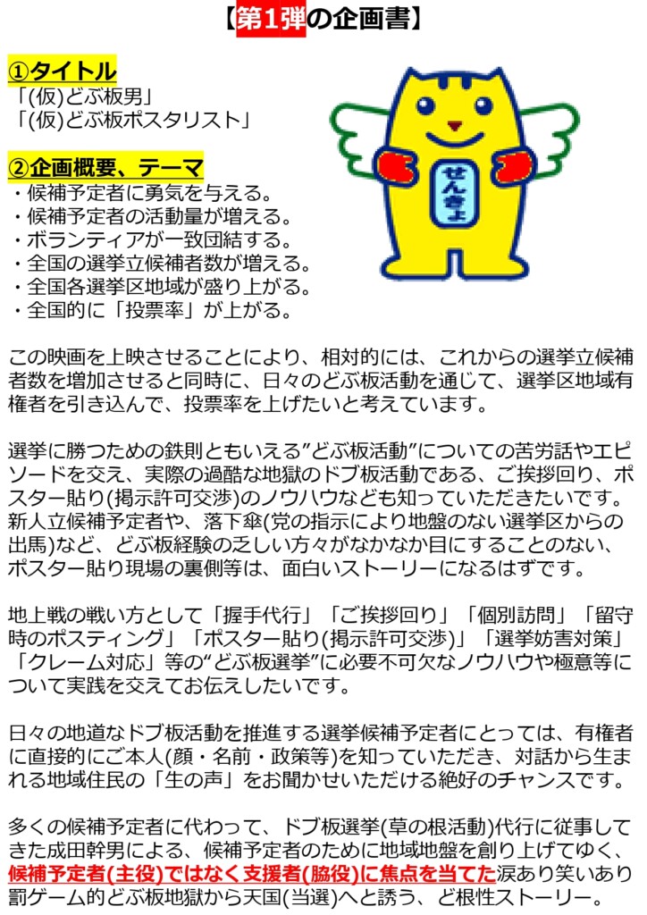 【企画書】第1弾ドキュメンタリー映画「(仮)どぶ板選挙の男」