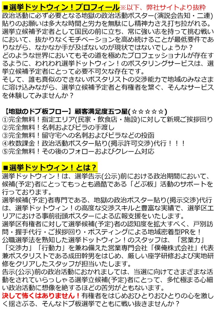 ④枚数課金!政治活動ポスター貼り(掲示許可交渉)代行!!!